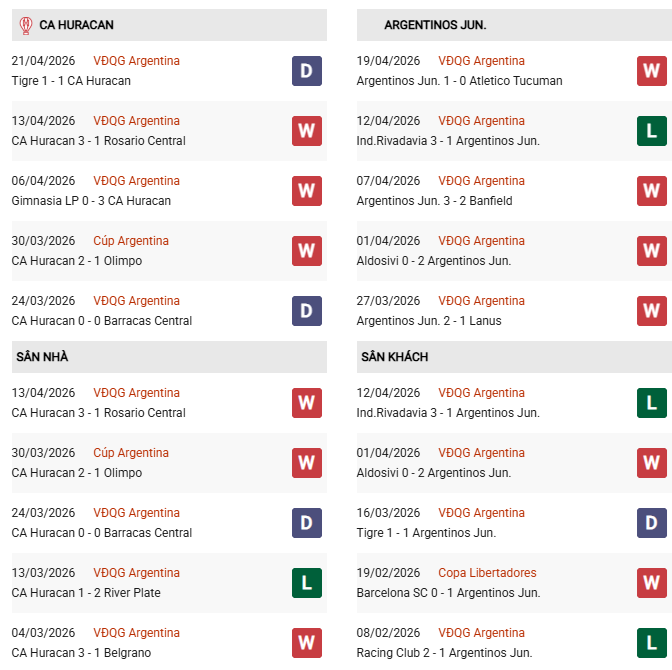 Thống kê phong độ CA Huracan vs Argentinos Juniors: