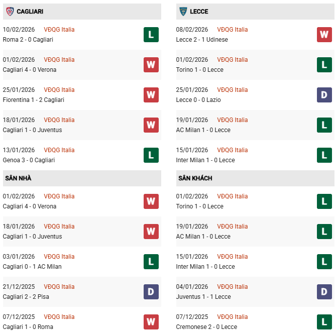 Cagliari đã thắng cả 2 trận gần nhất trên sân nhà, trong khi Lecce không thắng ở 6 chuyến làm khách gần đây tại Serie A (thua 5, hòa 1). Với tương quan đó, đây là cơ hội tốt để thầy trò HLV Pisacane giữ trọn 3 điểm và buộc đội khách ra về tay trắng.