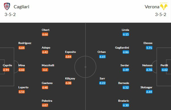 Đội hình dự kiến Cagliari vs Verona:
