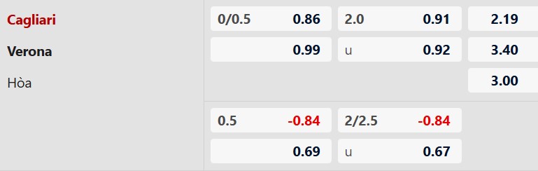 Thông tin tỷ lệ cược Cagliari vs Verona: