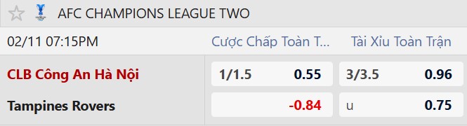 Thông tin tỷ lệ kèo CAHN vs Tampines Rovers: