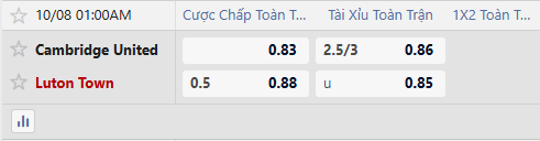 Thông tin tỷ lệ kèo Cambridge vs Luton Town: