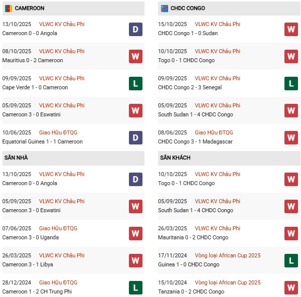 - Trên sân nhà, Cameroon thắng 6, thua 1 trước Congo.
