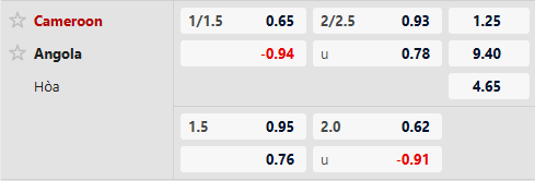 Thông tin tỷ lệ bóng đá Cameroon vs Angola: