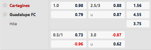 Thông tin tỷ lệ Cartagines vs Guadalupe: