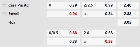 Thông tin tỷ lệ kèo Casa Pia vs Estoril: