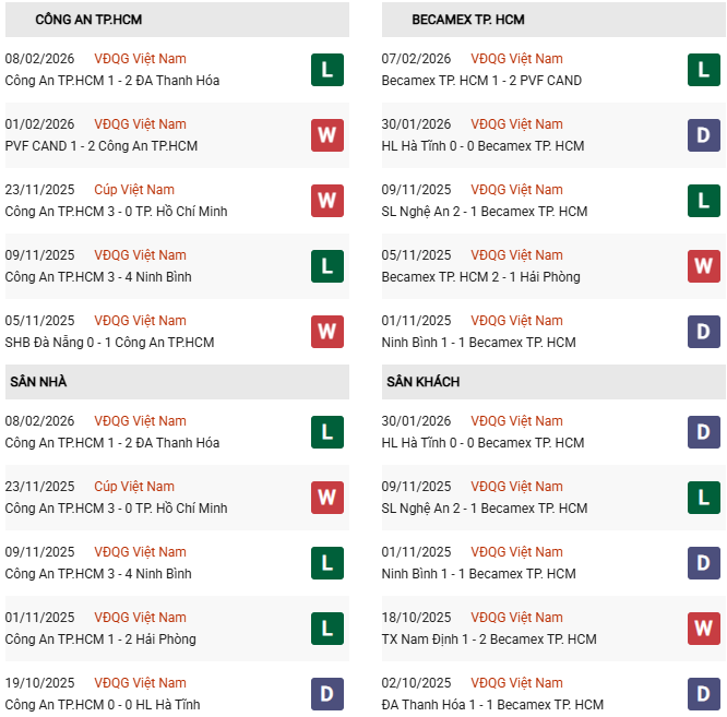 Thống kê phong độ CATP.HCM vs Becamex TP.HCM: