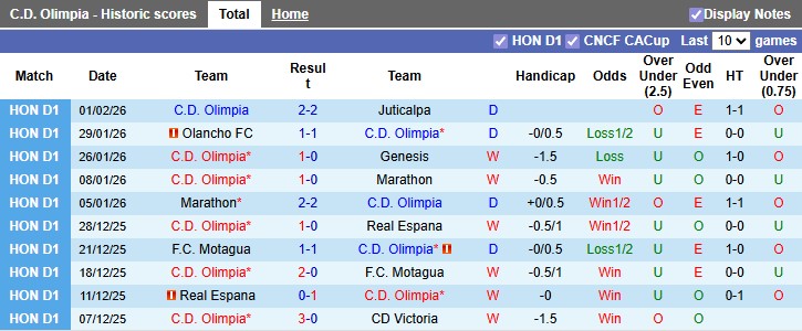 CD Olimpia góp mặt tại Concacaf Champions Cup nhờ chức vô địch giải VĐQG Honduras 2025, qua đó tiếp tục khẳng định vị thế hàng đầu của bóng đá Honduras ở khu vực Trung Mỹ. Bước vào mùa giải mới, đội chủ sân Estadio Nacional duy trì phong độ rất ổn định khi bất bại cả 10 trận gần nhất trên mọi đấu trường với 6 chiến thắng và 4 trận hòa.