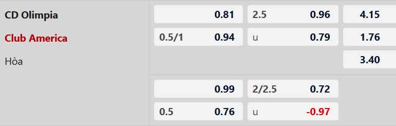 Thông tin tỷ lệ kèo CD Olimpia vs Club America: