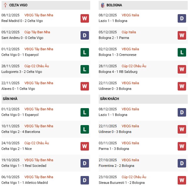 Celta Vigo bước vào trận đấu này với một chút tự tin sau khi trải qua 2 trận bất bại, bao gồm chiến thắng trước Real Madrid. Tuy nhiên, Bologna chỉ thua 1 trong 14 lần ra quân gần đây và bất bại 7 trận sân khách gần nhất có đủ khả năng để giành điểm.