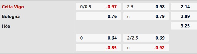 Soi kèo châu Á Celta Vigo vs Bologna: