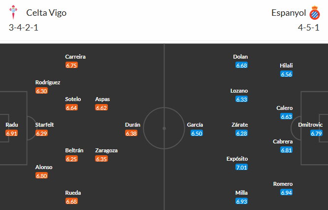 Đội hình dự kiến Celta Vigo vs Espanyol:
