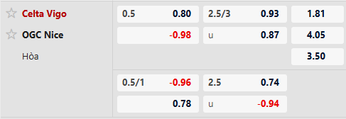 Celta Vigo hoàn toàn xứng đáng được đánh giá cao hơn ở cuộc đấu này khi Nice đang thể hiện quá tệ. Đội chủ nhà nằm kèo trên và chấp 1/2 bàn. Có lợi thế sân nhà cùng phong độ và tinh thần lên cao sau những trận đấu ấn tượng liên tiếp, Celta Vigo đủ khả năng đánh bại Nice ngay sau 90 phút và thắng luôn kèo châu Á.