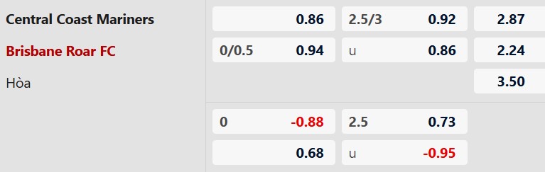 Soi kèo châu Á Central Coast vs Brisbane Roar: