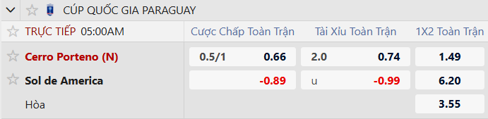 Cerro Porteno vẫn được đánh giá cao hơn, họ chấp 3/4 bàn cả trận. Sol America chưa bao giờ là đối thủ xứng tầm của Cerro Porteno. Thực tế cho thấy, Cerro Porteno thắng Sol America đến 7/10 trận gặp nhau gần nhất. Hiện tại, Cerro Porteno có mạch 3 trận toàn thắng và đang cạnh tranh cho mục tiêu vô địch. Giới chuyên môn nhận định, Cerro Porteno sẽ có được chiến thắng.