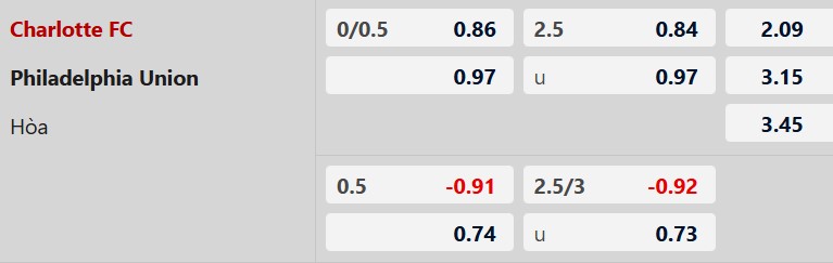 Thông tin tỷ lệ Charlotte vs Philadelphia Union:
