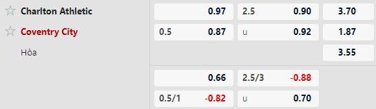Thông tin tỷ lệ bóng đá Charlton vs Coventry: