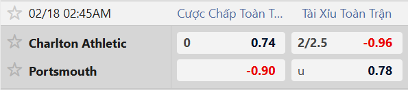 Thông tin tỷ lệ bóng đá Charlton vs Portsmouth: