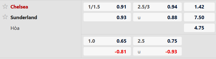 Soi kèo tài xỉu Chelsea vs Sunderland: