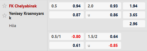 Thông tin tỷ lệ kèo Chelyabinsk vs Yenisey: