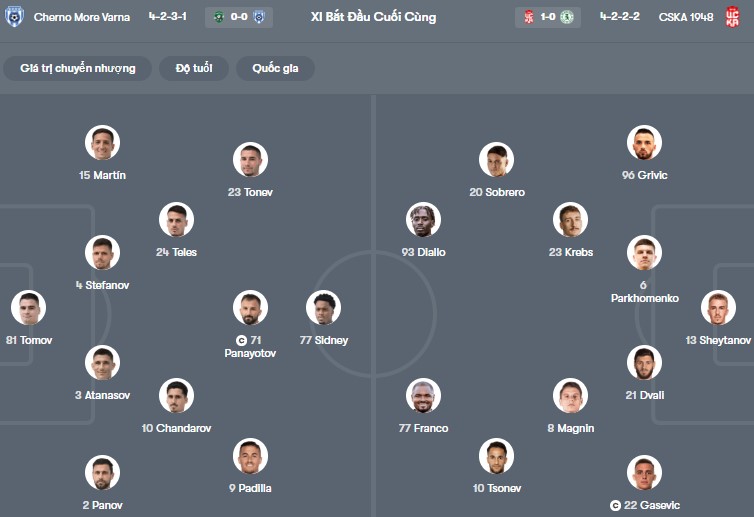 Đội hình dự kiến Cherno More vs CSKA 1948 Sofia: