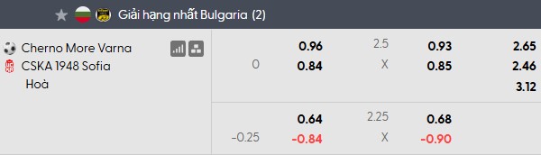 Thông tin tỷ lệ kèo Cherno More vs CSKA 1948 Sofia: