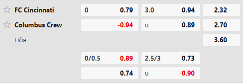 Thông tin kèo bóng đá Cincinnati vs Columbus Crew: