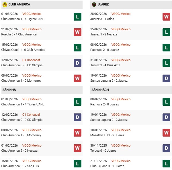 - Trên sân nhà, Club America thắng 5, thua 2 trước Juarez.