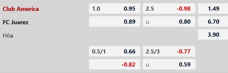 Thông tin tỷ lệ cược Club America vs Juarez: