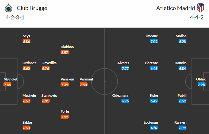 Đội hình dự kiến Club Brugge vs Atletico Madrid: