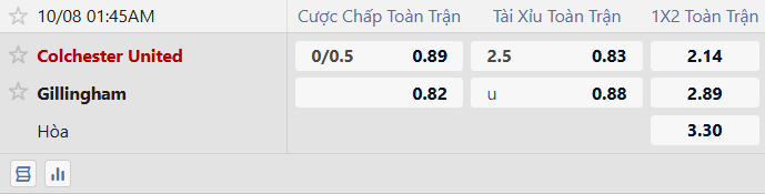Soi kèo tài xỉu Colchester United vs Gillingham:
