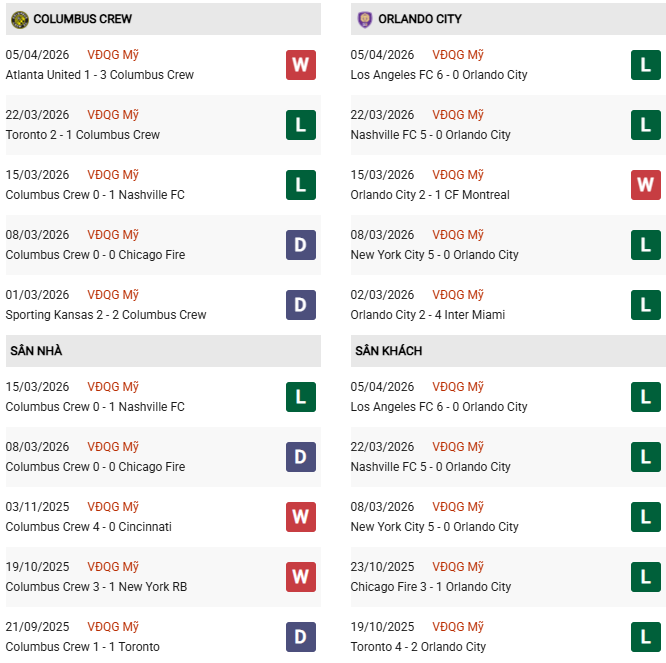 - Columbus Crew thắng 3, hòa 3, thua 4 trong 10 trận gặp Orlando gần đây.