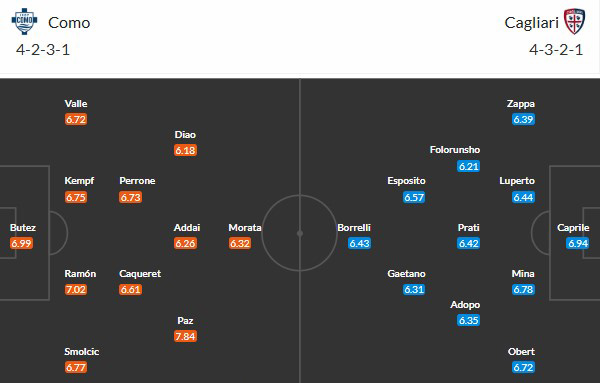 Cagliari không hề yếu nhưng thất bại 0-2 trên sân của Lazio hồi đầu tuần này kéo dài thêm một giai đoạn sa sút về thành tích khó tránh khỏi của một CLB ở nửa sau BXH. Trong 6 trận gần nhất, thành tích của Cagliari là thua 4, hòa 2. 6 trận đó Cagliari nhận cả thảy 11 bàn thua tức trung bình gần 2 bàn/trận. Với phong độ như vậy Cagliari khó có thể gây bất ngờ trong chuyến đi tới miền Bắc. Còn Como có cơ hội lớn để bắt đầu hành trình tiến vào tốp đầu.