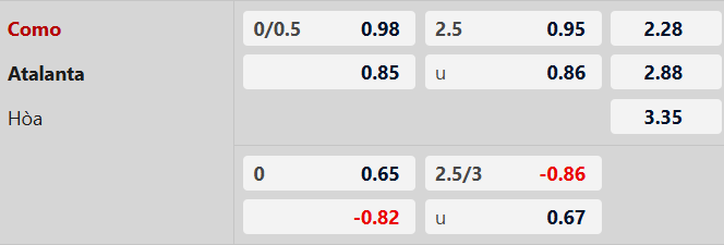 Thông tin tỷ lệ bóng đá Como vs Atalanta: