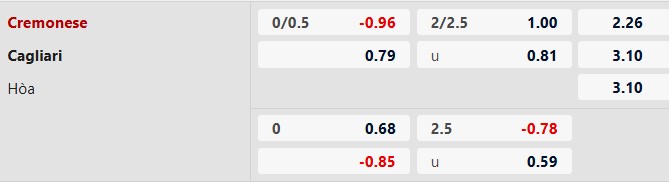 Thông tin tỷ lệ bóng đá Cremonense vs Cagliari:
