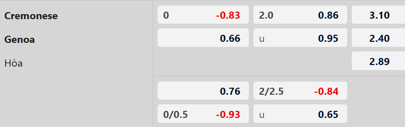 Soi kèo tài xỉu Cremonese vs Genoa: