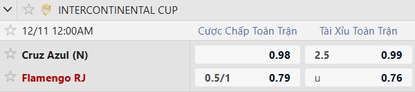 Dự đoán Cruz Azul vs Flamengo, 0h00 ngày 11/12, vòng 2 Intercontinental Cup, sân Ahmad bin Ali. Việc Flamengo nhận mức chấp lên tới 3/4 bàn (có thể tăng lên -1) cho thấy giới chuyên môn không tin sẽ xảy ra bất ngờ.