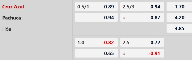 Lựa chọn tốt nhất: Cruz Azul -3/4 cả trận