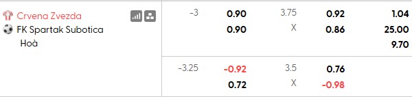 Thông tin tỷ lệ kèo Crvena Zvezda vs Subotica: