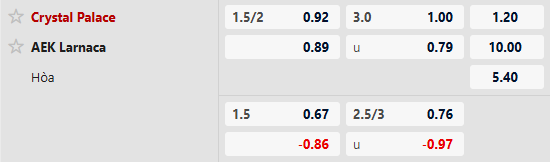 Thông tin tỷ lệ kèo Crystal Palace vs AEK Larnaca: