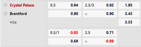 Thông tin kèo bóng đá Crystal Palace vs Brentford: