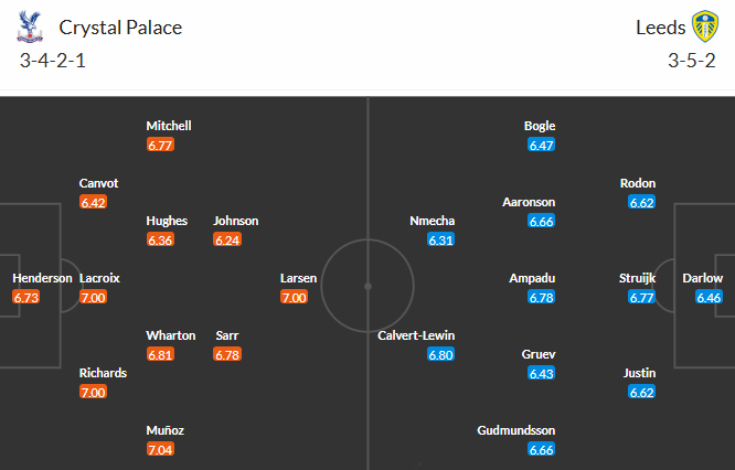 * Theo siêu máy tính Sports Mole, tỷ lệ giành chiến thắng của Crystal Palace là 45%. Tỷ lệ thắng của Leeds là 26%. Tỷ lệ hòa là 29%.
