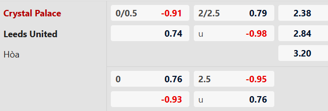 Soi kèo châu Á Crystal Palace vs Leeds: