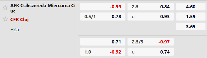Thông tin kèo bóng đá Csikszereda vs CFR Cluj: