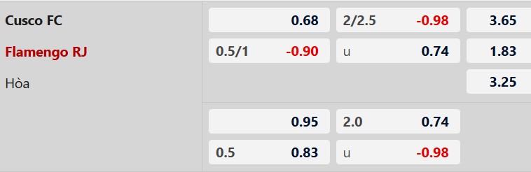 Thông tin tỷ lệ bóng đá Cusco vs Flamengo: