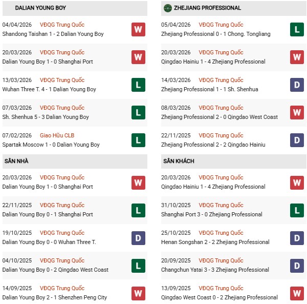 - Dalian Yingbo thắng 1, hòa 1 trong 2 trận gặp Zhejiang gần đây.