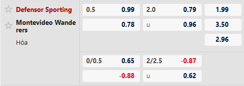 Thông tin tỷ lệ Defensor vs Montevideo Wanderers: