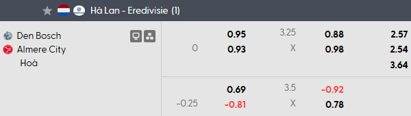 Thông tin tỷ lệ bóng đá Den Bosch vs Almere City:
