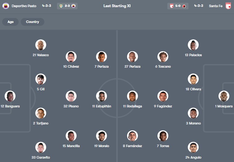 Đội hình dự kiến Deportivo Pasto vs Santa Fe: