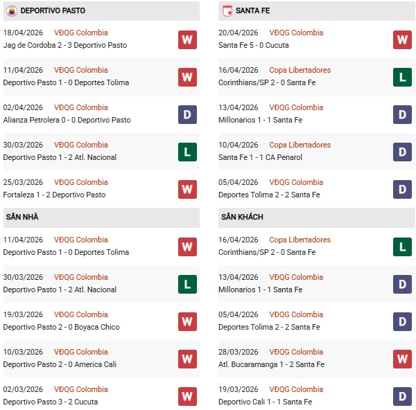 - Trên sân nhà, Deportivo Pasto thắng 3, thua 4 trước Santa Fe.